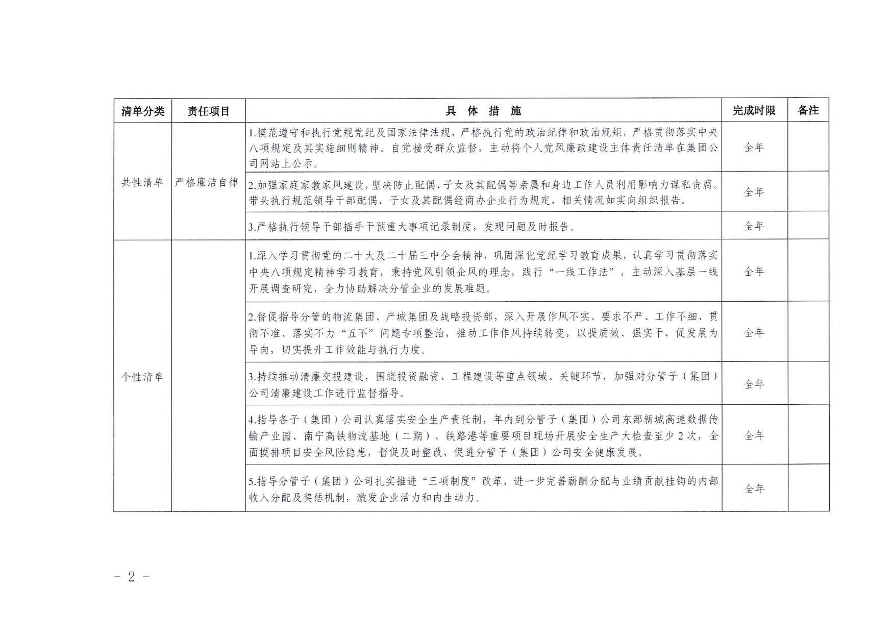 南寧交投集團(tuán)領(lǐng)導(dǎo)班子其他成員2025年度黨風(fēng)廉政建設(shè)“一崗雙責(zé)”清單(六)
