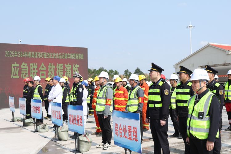 為全面提升林橫高速對(duì)服務(wù)區(qū)?;愤\(yùn)輸泄漏突發(fā)事故的應(yīng)急處置能力,加強(qiáng)“一路多方”各部門間的協(xié)同配合,保障過往司乘生命財(cái)產(chǎn)安全,3月18日,南寧交投集團(tuán)下屬南寧高速公司聯(lián)合賓陽(yáng)縣應(yīng)急局、生態(tài)局、交警、消防救援大隊(duì)、衛(wèi)生局及區(qū)執(zhí)法局二支隊(duì)四大隊(duì)、六大隊(duì)等單位,在林橫高速鄒圩服務(wù)區(qū)開展?;愤\(yùn)輸泄漏突發(fā)事故應(yīng)急聯(lián)合救援演練。