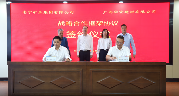 南寧礦業(yè)集團黨總支書記、董事長張二毛與華宏建材公司黨委書記、董事長莫少政代表雙方進行簽約,雙方將圍繞“產(chǎn)業(yè)協(xié)同、鏈式發(fā)展”核心理念,致力構建全鏈條協(xié)同機制,打造建材產(chǎn)業(yè)融合發(fā)展新機制。